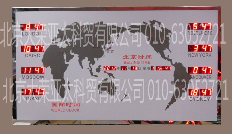 尺寸:80*160*5厘米,不锈钢外壳,写真面板。微电脑控制,只需调整北京时间即可,其他市区自动计算显示。
